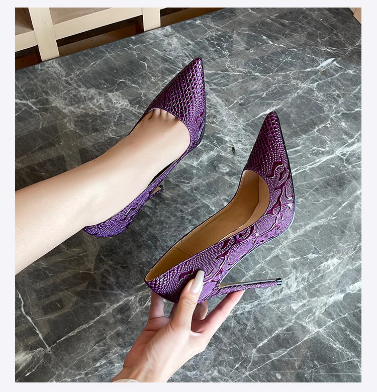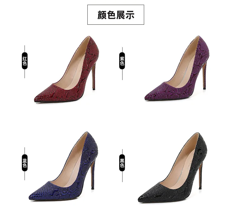 New Snake Print 12cm Fashion Elegant Party Mature Shallow Sexy Fetish Thin Heels Pointed Toe Pumps Bride Full Dress Models Show heels_stiletto