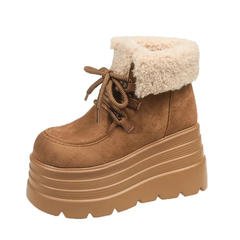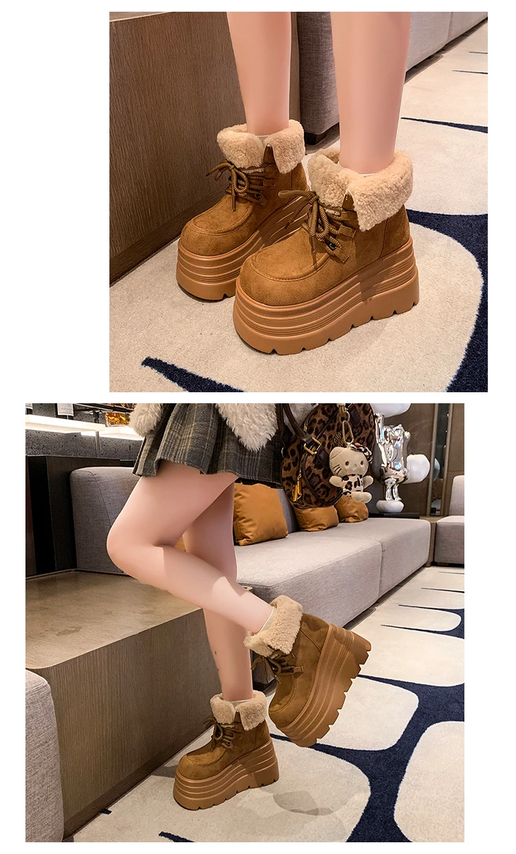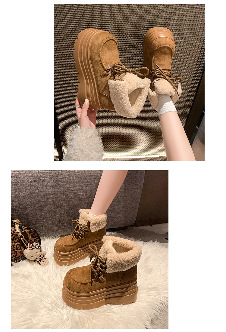 New Women Winter Warm Snow Boots 10CM High Platform Short Booties Designer Suede Leather Cotton Shoes Woman Ankle Botas Mujer boots_platform