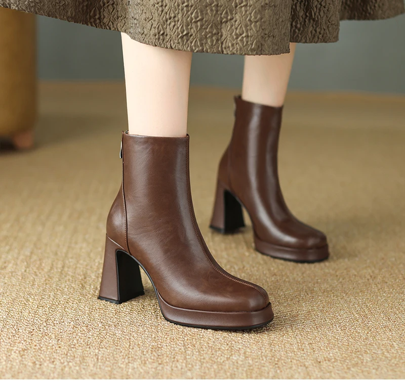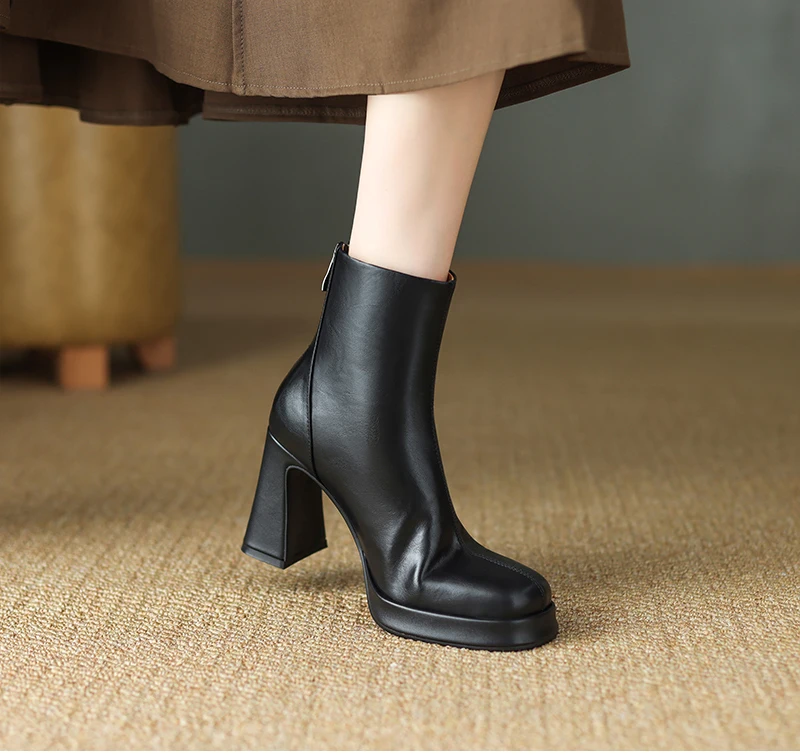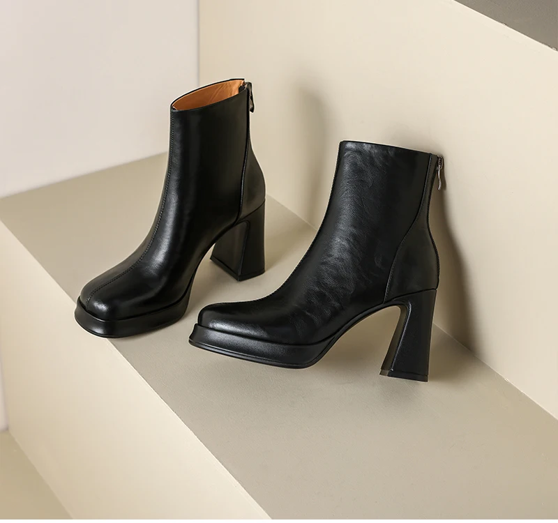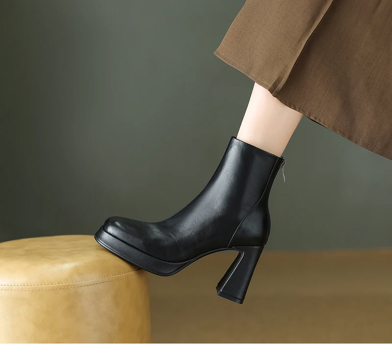 Night Club Platform Thick Heel Women Ankle Boots Fashion Square Toe Slim Short Booties Party Stripper Female Shoes boots_platform