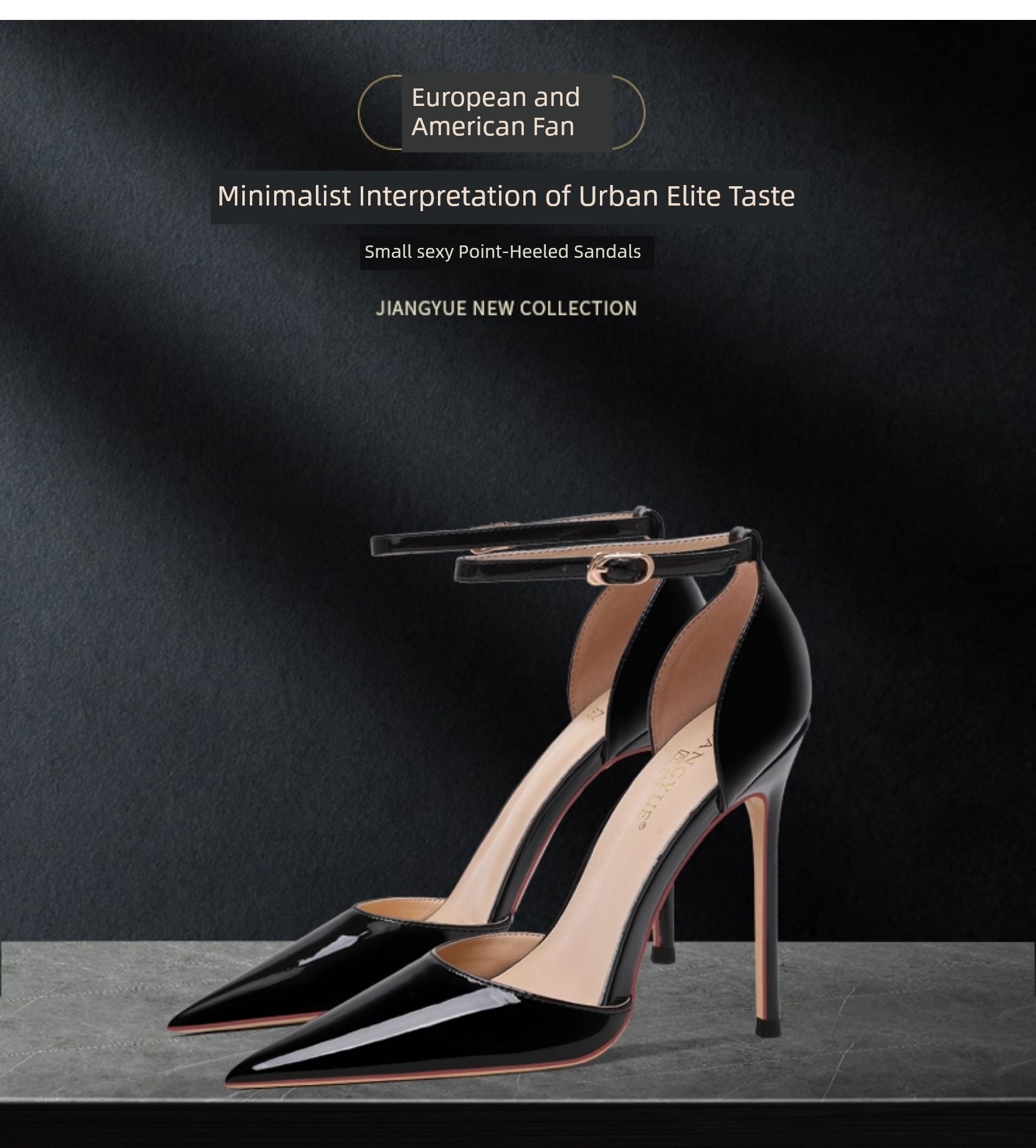 Patent Leather Hollow Super High Heel Sandals Sexy Buckle Strap heels_stiletto