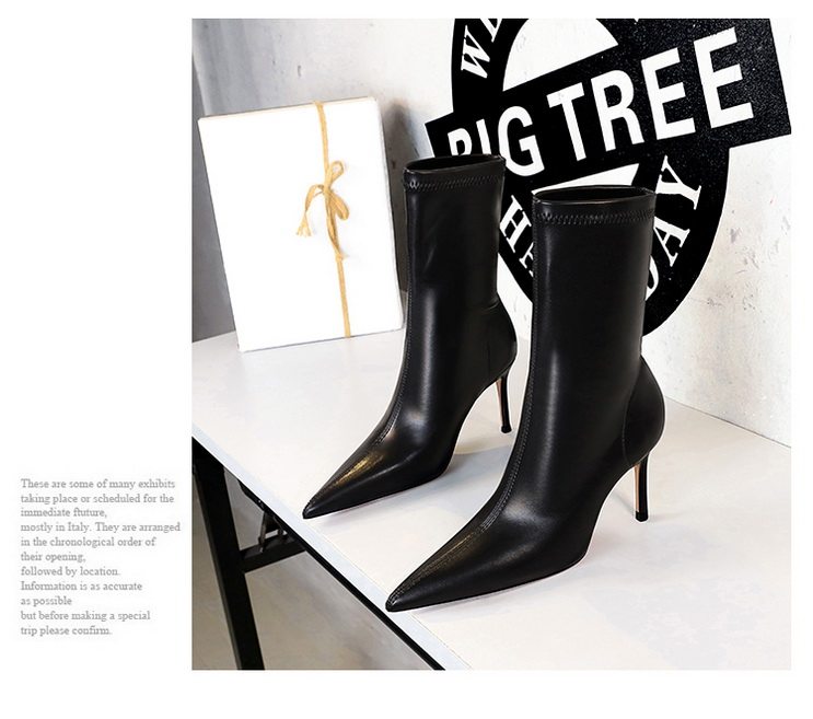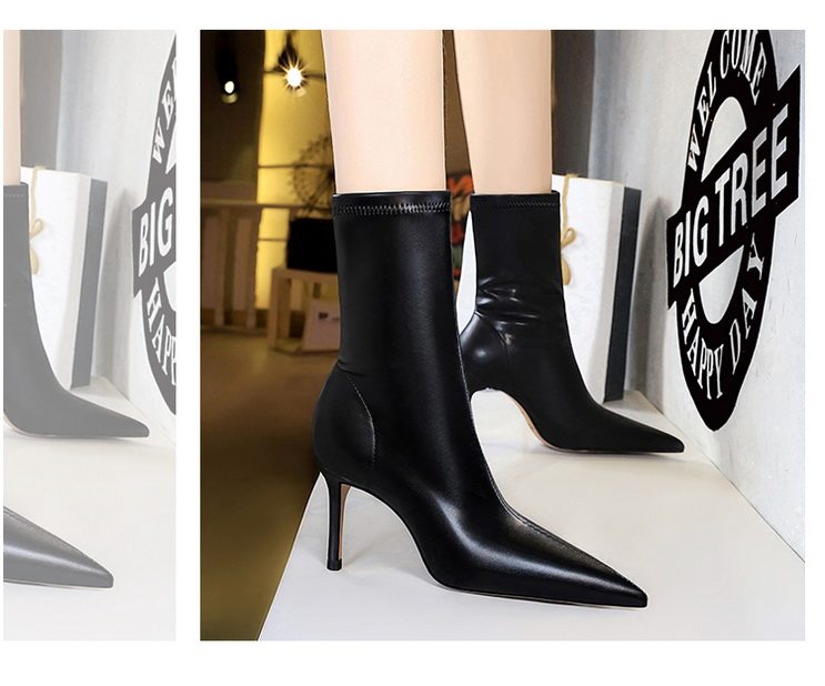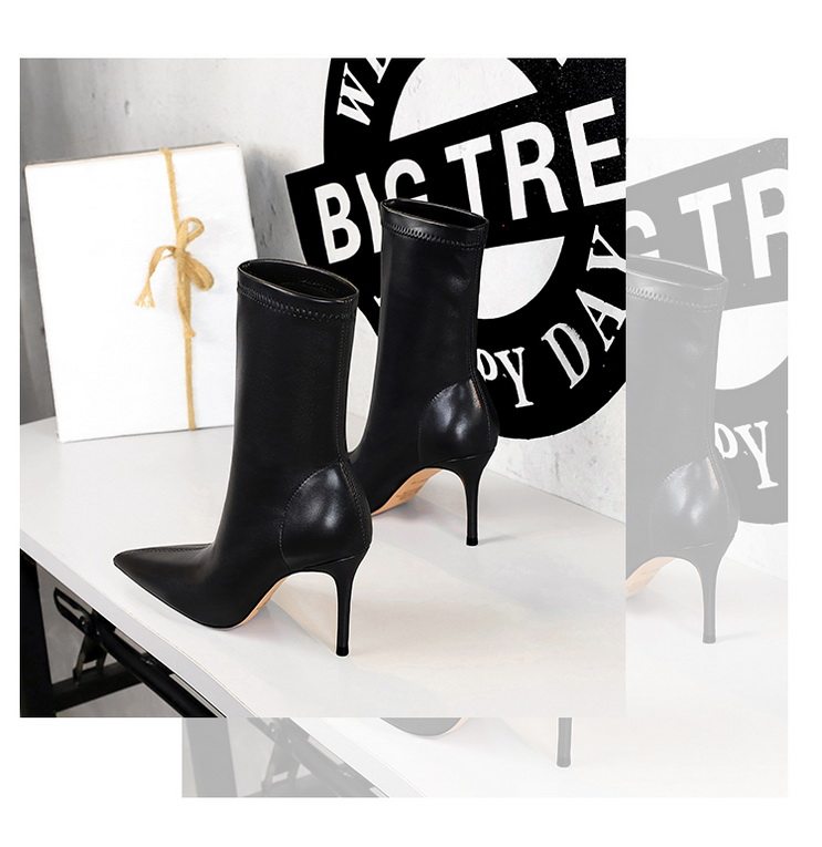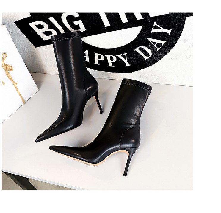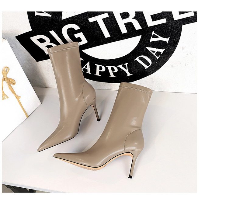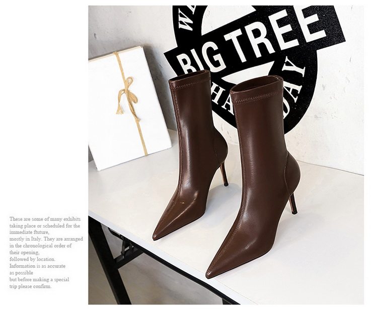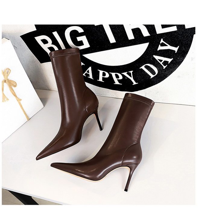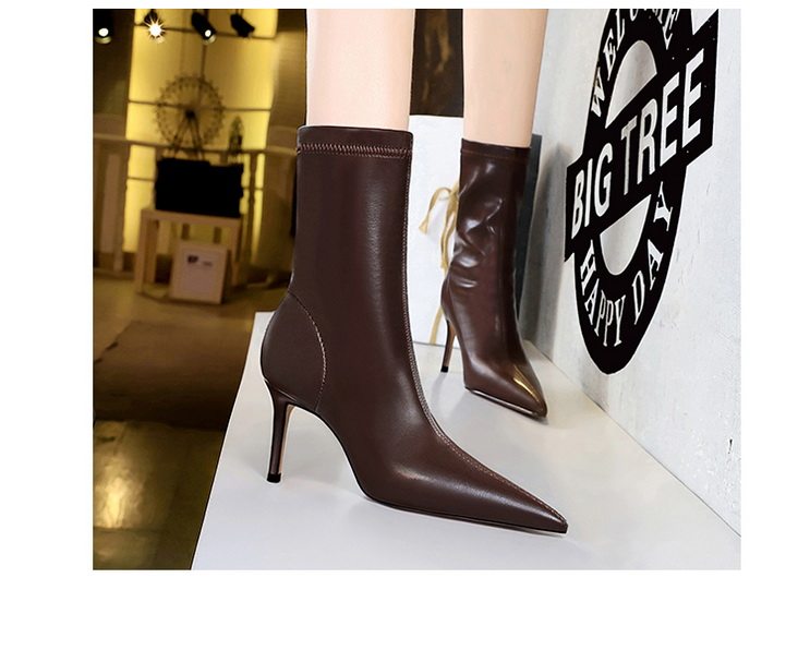 Patent Leather Spring And Autumn Stiletto Sexy Brown Middle Boots boots_highheel