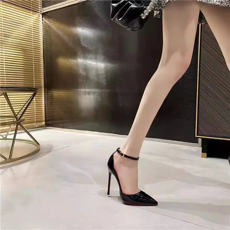 Patent Leather Women Ankle Strap D'orsay Stiletto Pumps Pointed Toe Sexy High Heel Shoes 8cm 10cm 12cm Customize heels_stiletto