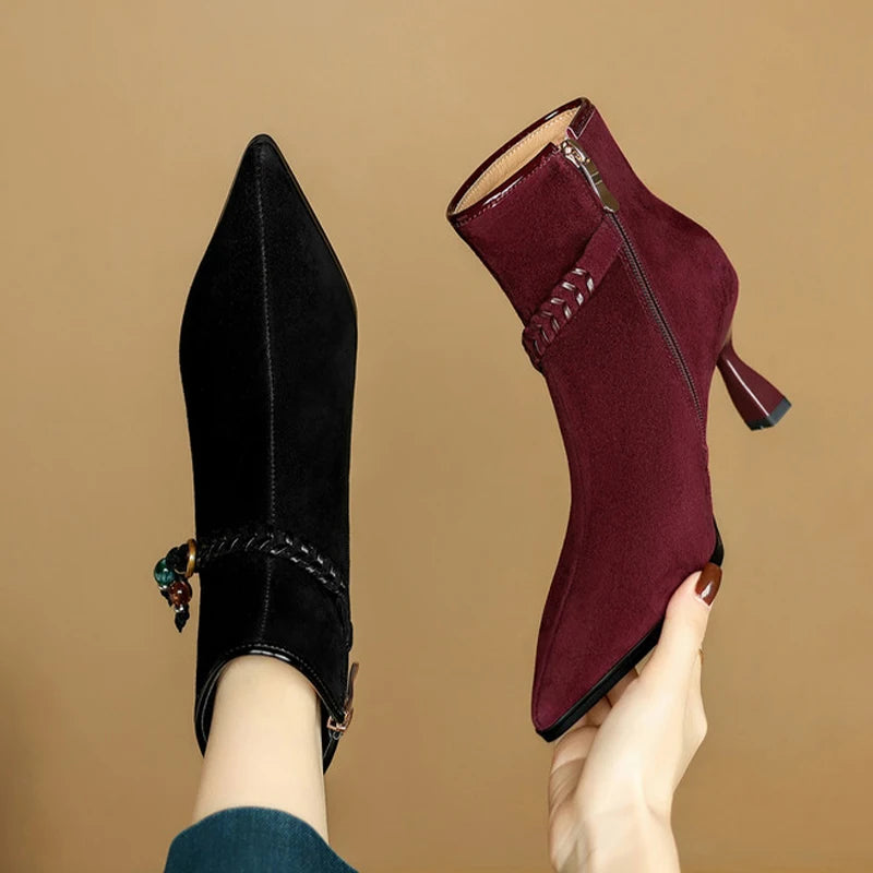Pointed Toe Women's Ankle Boots High Heels Fashion Dress Shoes Designer Luxury Winter Boots 2025 New Elegant Pumps Mujer Botas boots_highheel