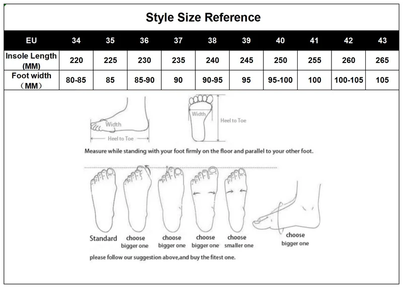 Shoes are Chinese Size , pls check the foot length to choose the correct size . Wide Foot suggest to choose one size bigger .