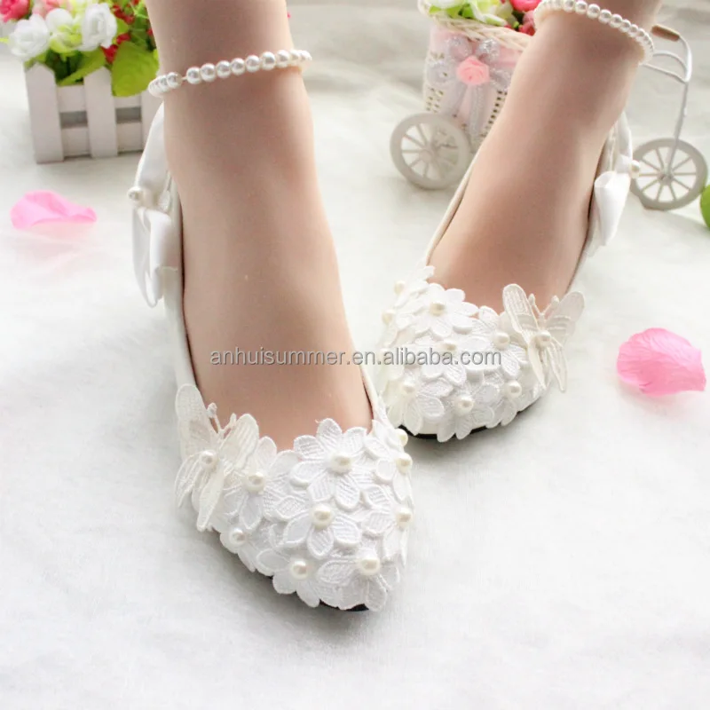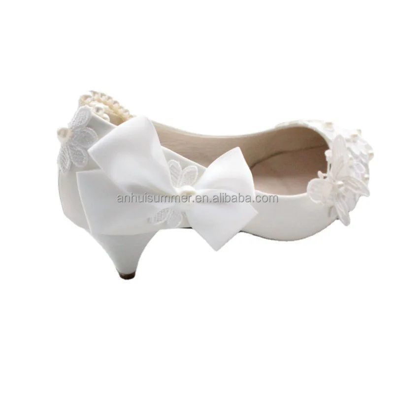 S2108F New Hot Selling High Quality White Bow Women's Large Size Medium Heel Bridal Wedding Shoes heels_bridal