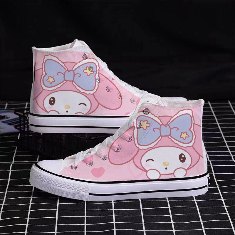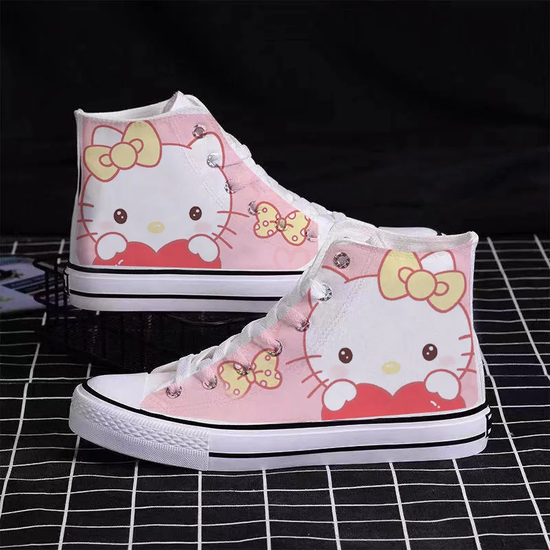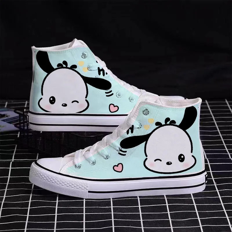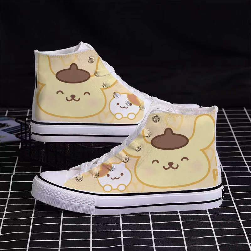 Sanrio Cute Pompompurin Hello Kitty Canvas Shoes Women Breathable Sneakers Brand Sport Casual Flats Shoes High Top Zapatos Mujer sneakers_women