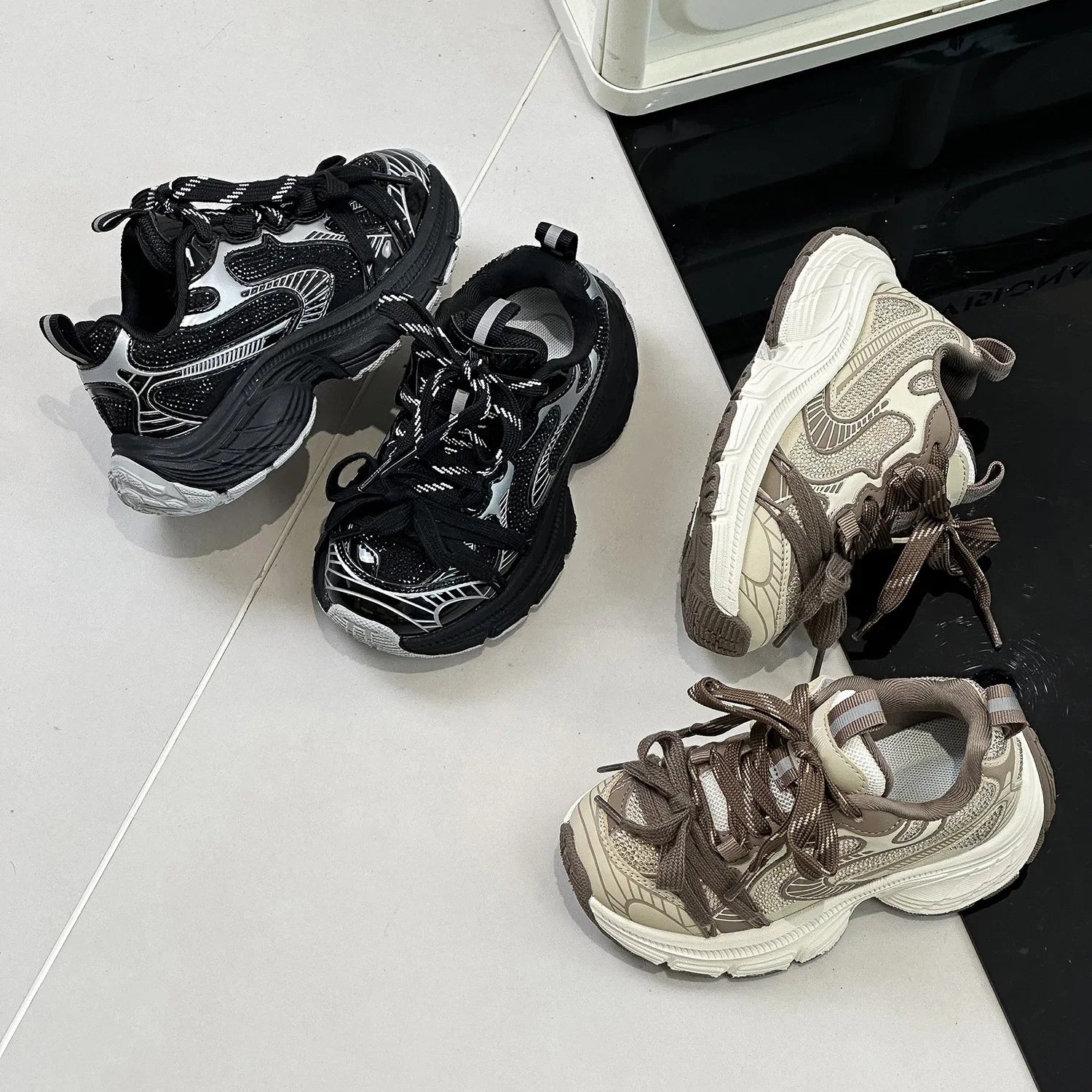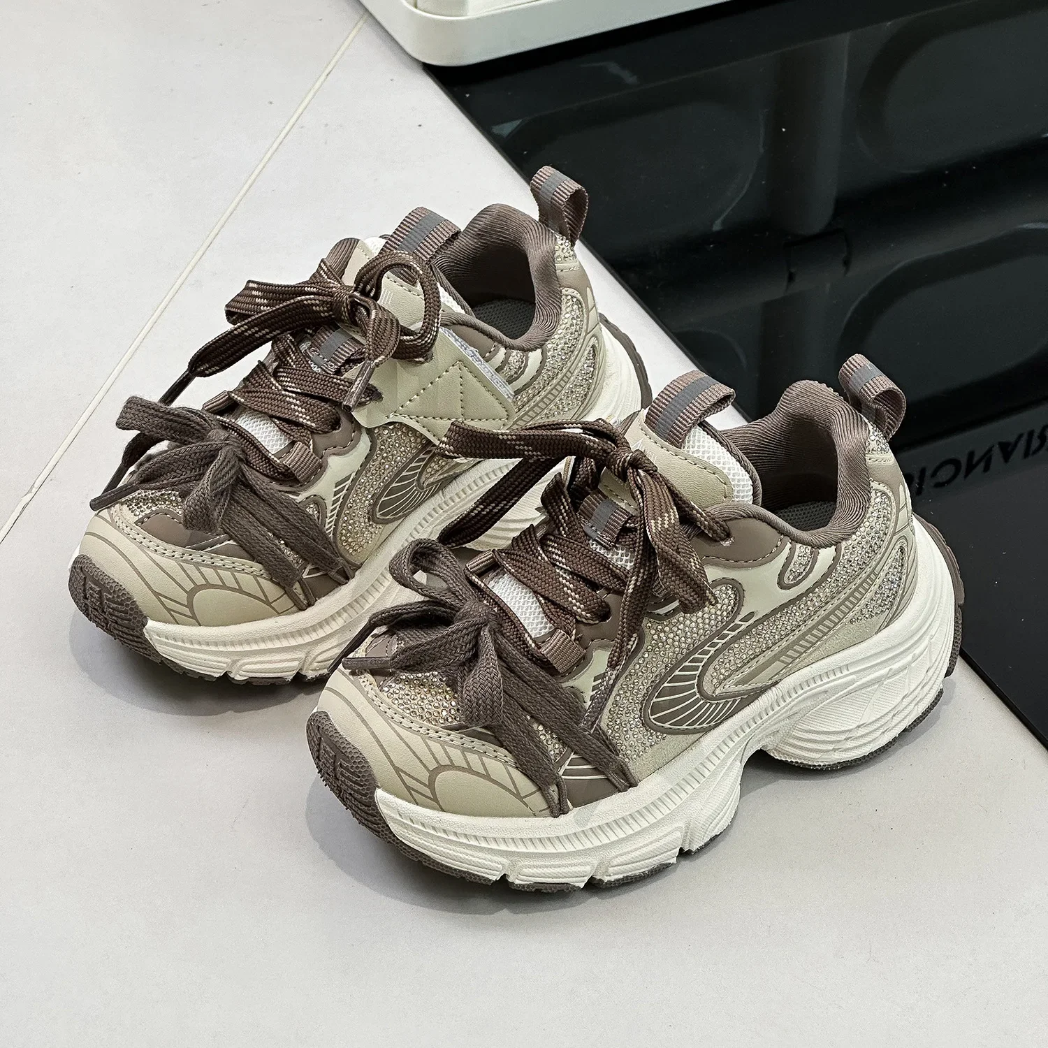Spring Autumn Children Boys Mesh Lace-up Running Sneakers Kids Girls Thick Bottom Hook & Loop Casual Running Sports Shoes sneakers_platform