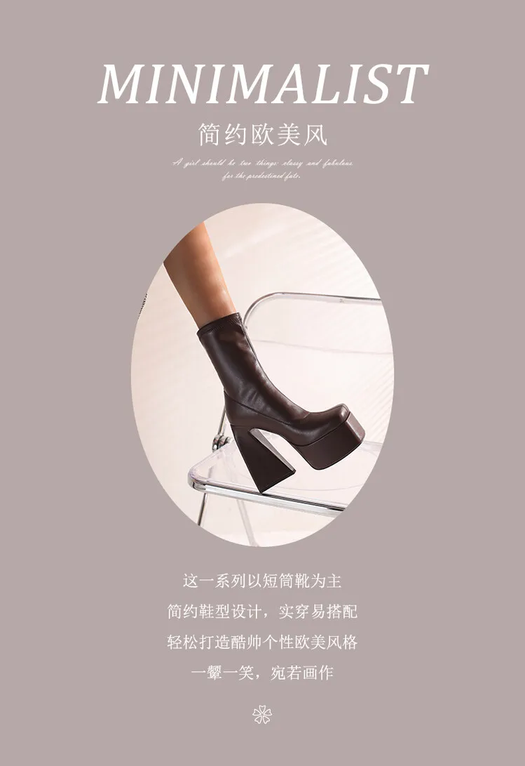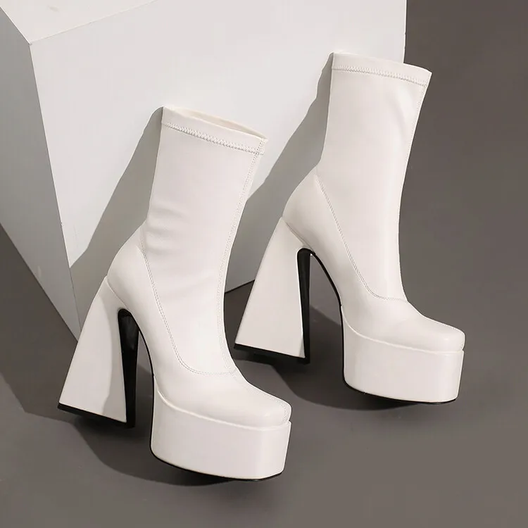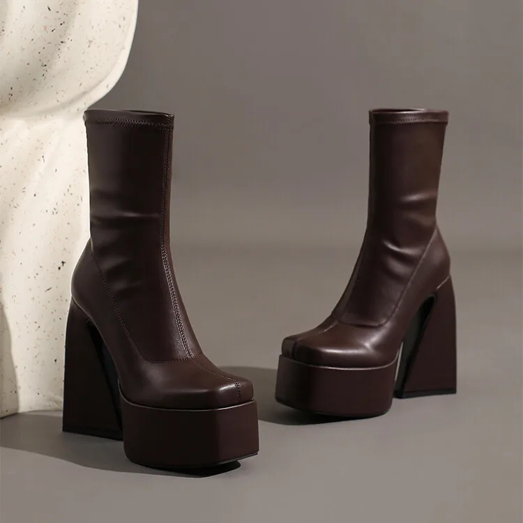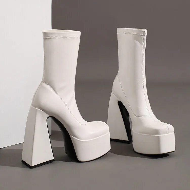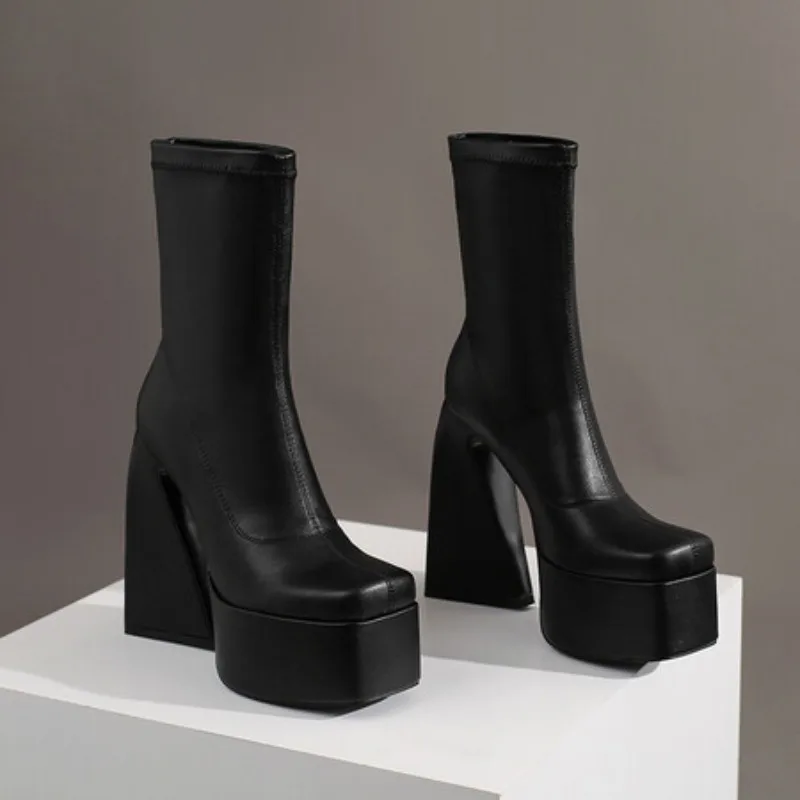 Stretch Punk Style Gothic Chunky Platform Ankle Boots for Women Autumn Winter Shoes Ladies Strange High Heels Boots Booties boots_platform