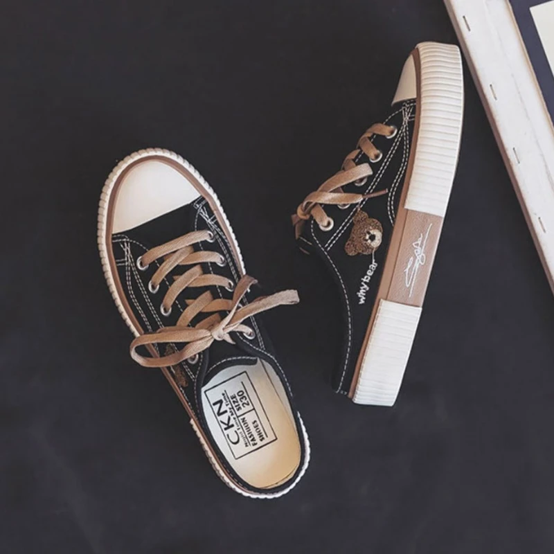 Women Cute Bear Canvas Shoes: New Flat Casual All-match Half