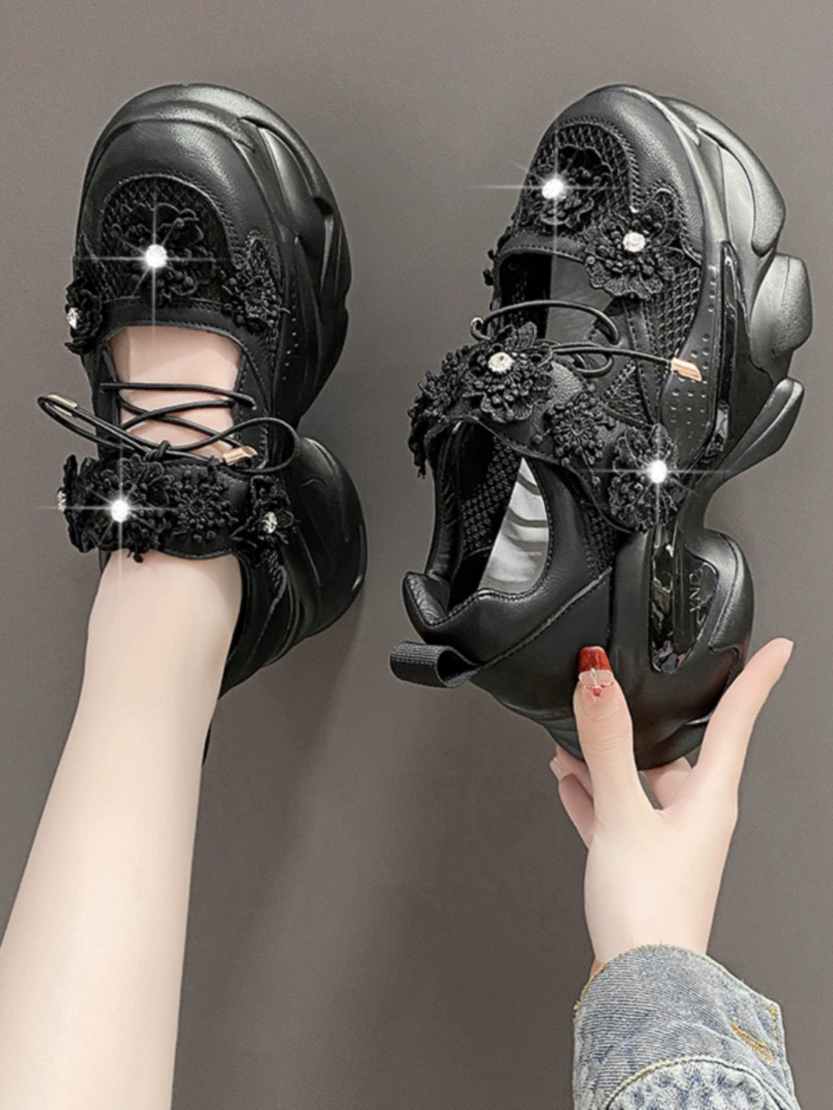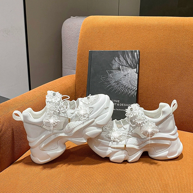 Thick Sole Cut Out Dad Shoes Women's Sandals Closed Toe 2025 Summer Breathable Mesh Shoes Flowers Super Light White Shoes sneakers_platform