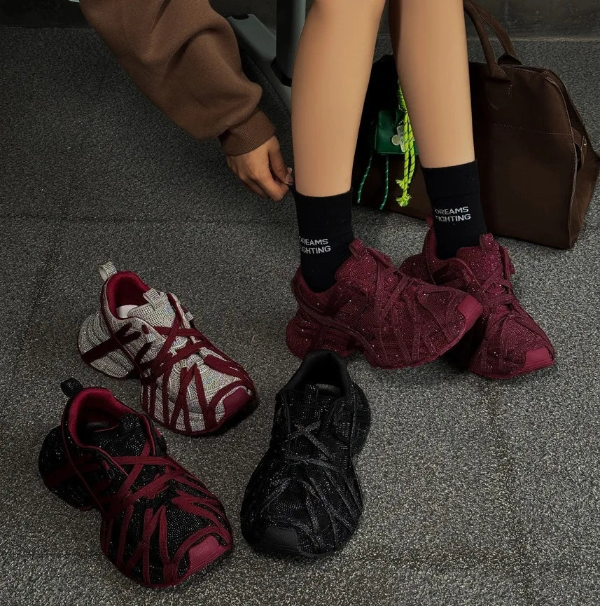 Top Quality Sneakers Women Skate Shoes Rhinestone Women Loafers Platform Fashion Shiny Women's Casual Shoes Crystal Sneaker sneakers_platform