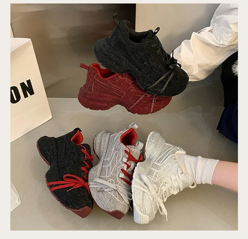 Top Quality Sneakers Women Skate Shoes Rhinestone Women Loafers Platform Fashion Shiny Women's Casual Shoes Crystal Sneaker sneakers_platform
