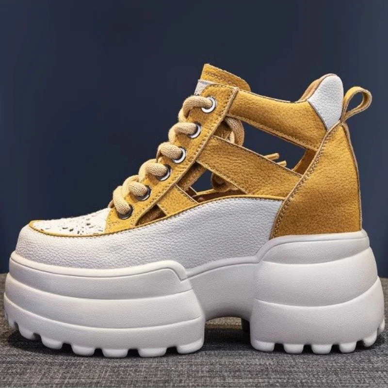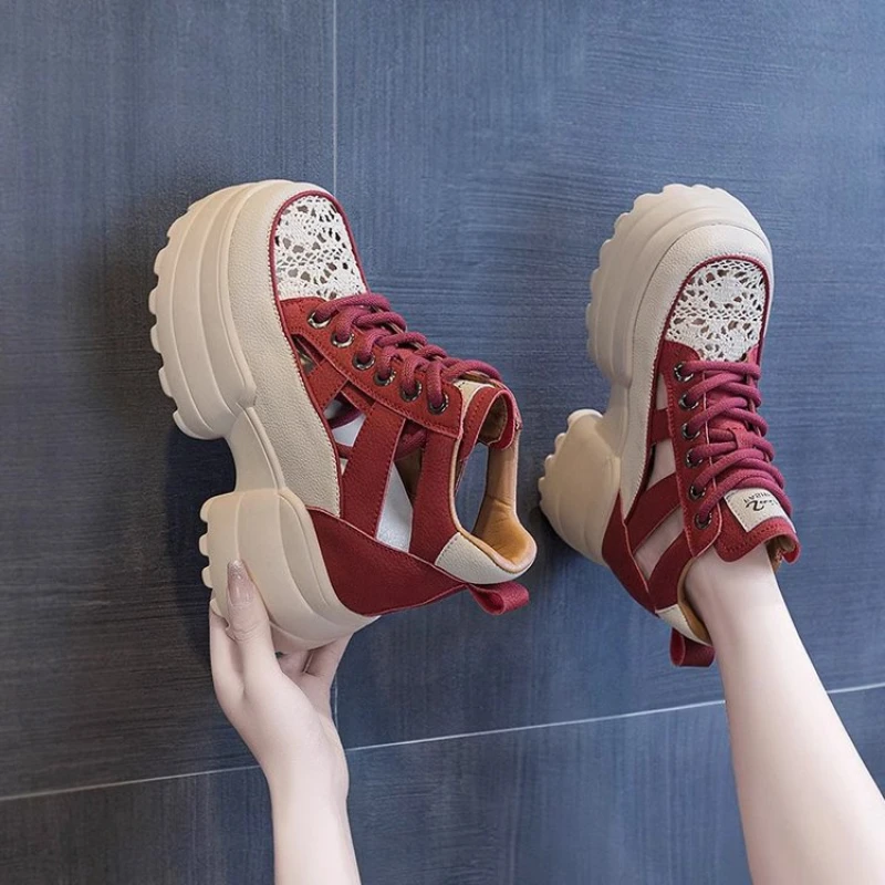 Trendy Thick Sole Women's Shoes 2024 Summer New Thick Mesh Hollow Inner Elevated Vulcanized Women's Sandals Platform Sneakers sneakers_platform