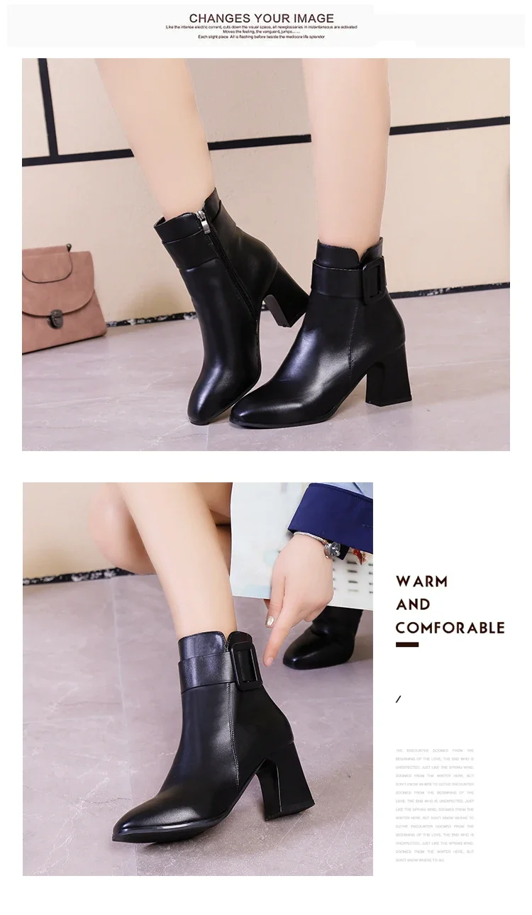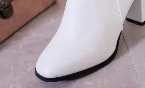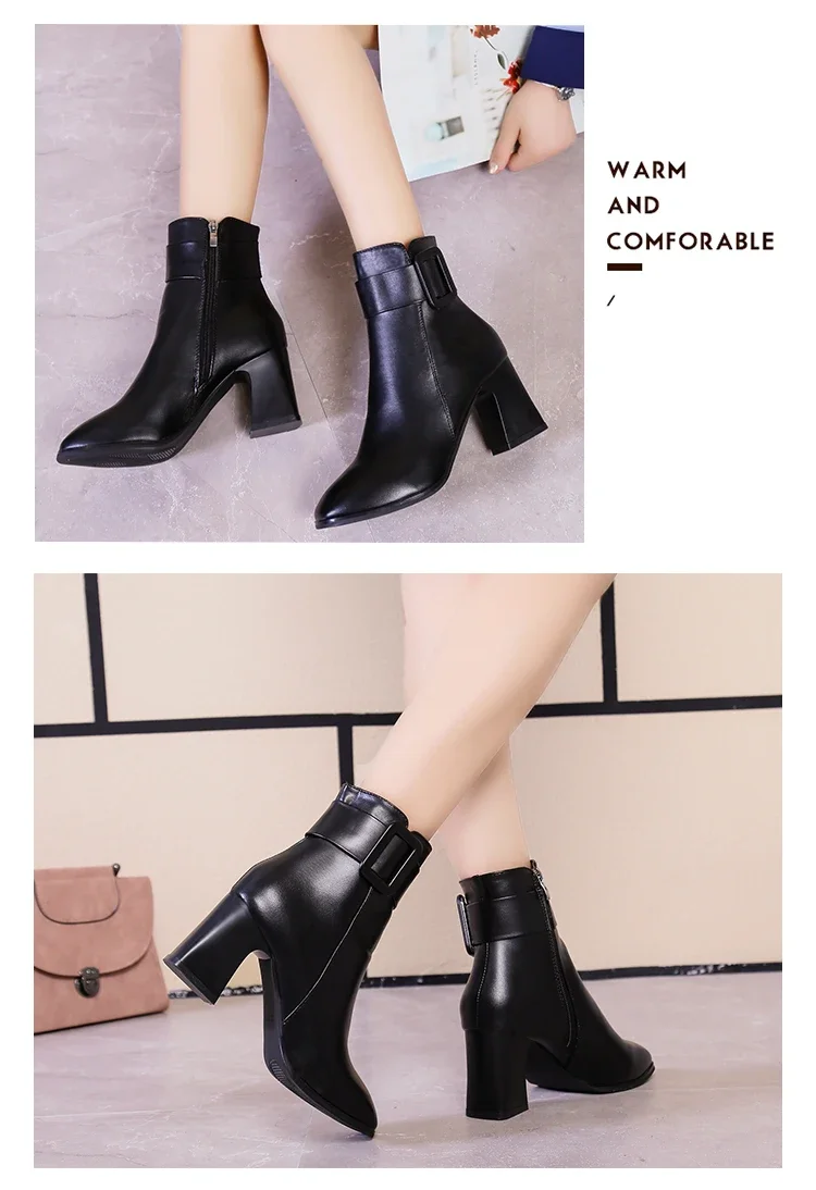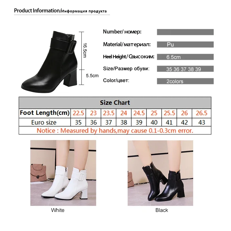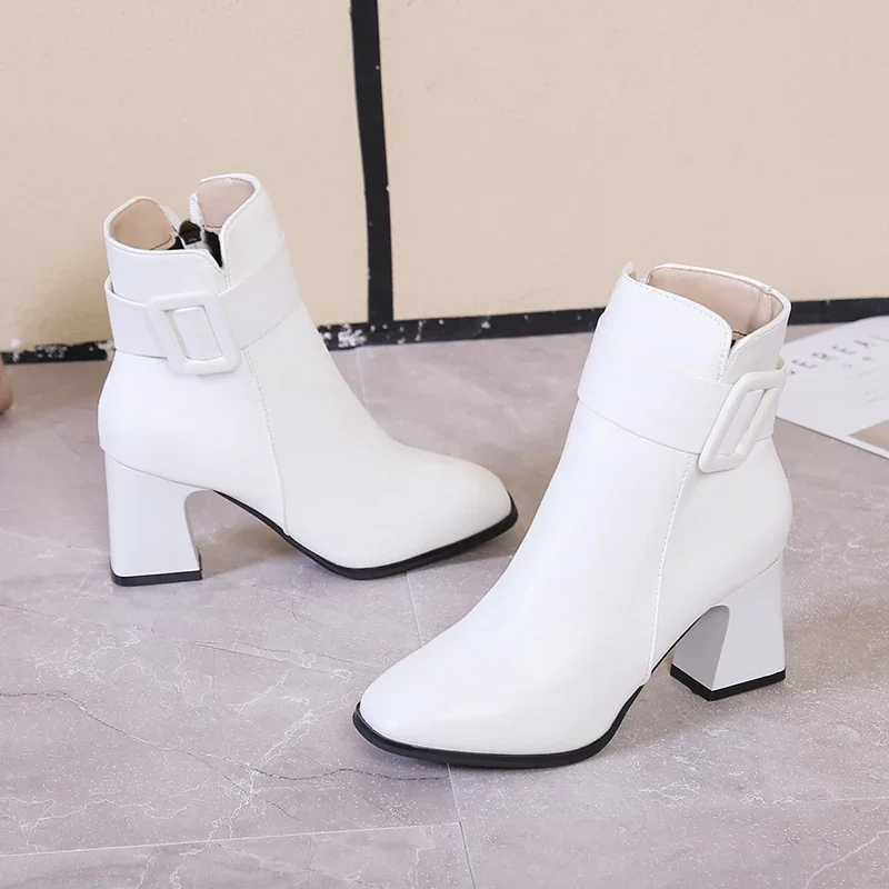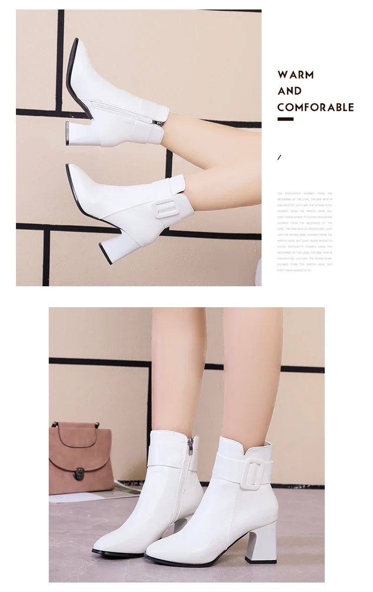 White Black Thick High Heel Ankle Boots Women 2024 Pointed Toe Keep Warm Elegant Short Booties Ladies Ankle Buckle Decoration boots_highheel