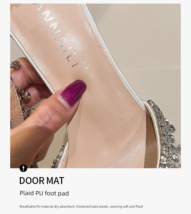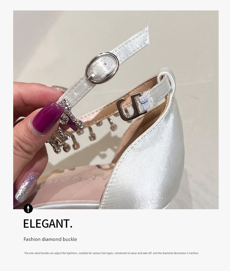 White Main Wedding Shoes Satin Flats Buckle High Heels Elegant Hollowed Sandals Plus Size Women's Shoes 41-43 heels_bridal