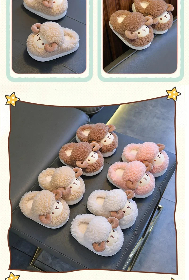 Winter Children Cotton Slippers Boys Girls Warm Anti Slip Home Slipper Fashion Cute Cartoon Alpaca Kids Parent-Child Plush Shoes kids_shoes
