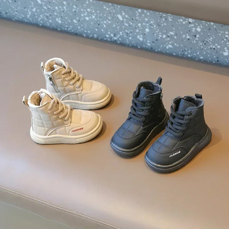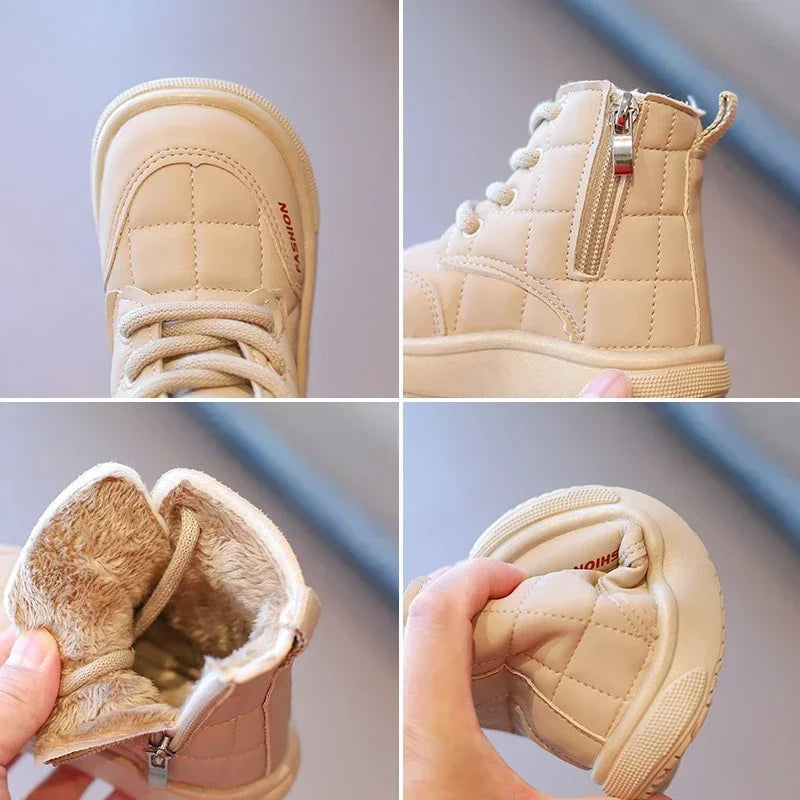 Winter Elegant Children Snow Boots Boys Girls Soft Warm Short Boot with Thick Fur Little Kids Cotton Shoes Cute Baby Boot H08104 kids_shoes