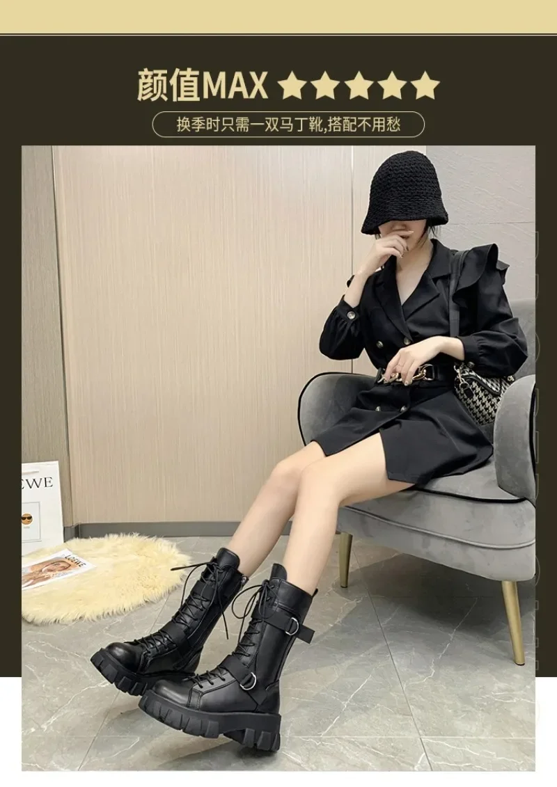 Women Mid-Calf Boots Motorcycle Boots Women's Cosplay High Boots Punk Gothic Black High Heel Shoes Women Long Knight boots_platform