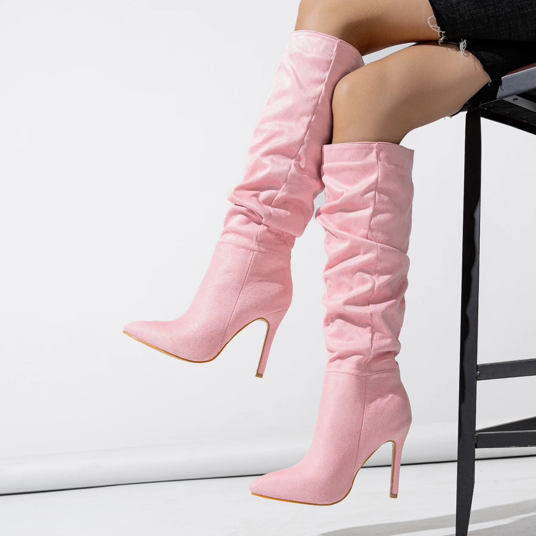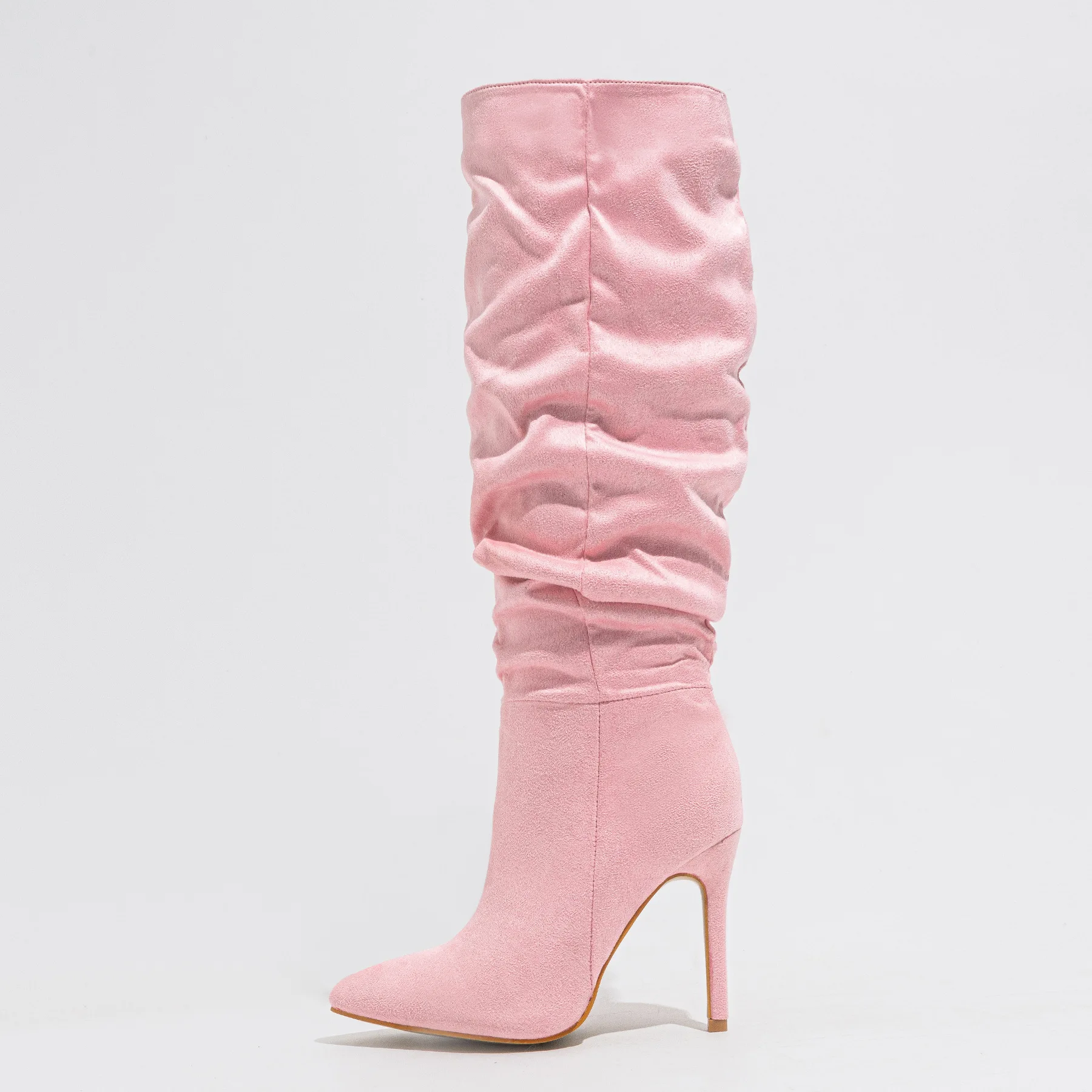 Women's Fashionable Over-the-Knee Western Boots Pointed Toe Natural Wrinkle Suiede Slip-On Design for Winter Autumn Increasing boots_highheel