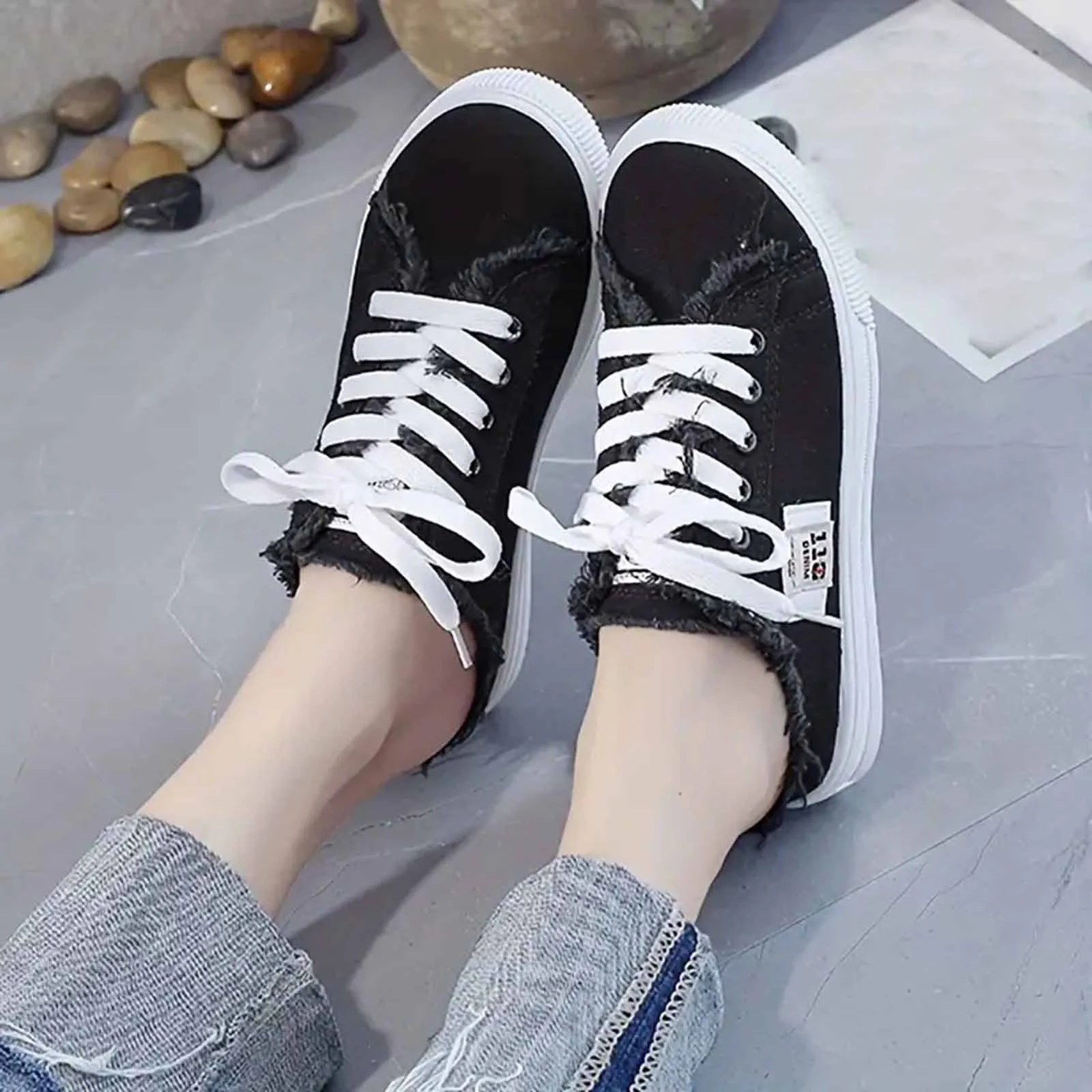 Womens Half Slipper Sneakers Comfortable Women Casual Shoe Lace-up Women Flat Shoes Breathable Canvas Shoes Anti-slip Zapatillas sneakers_women