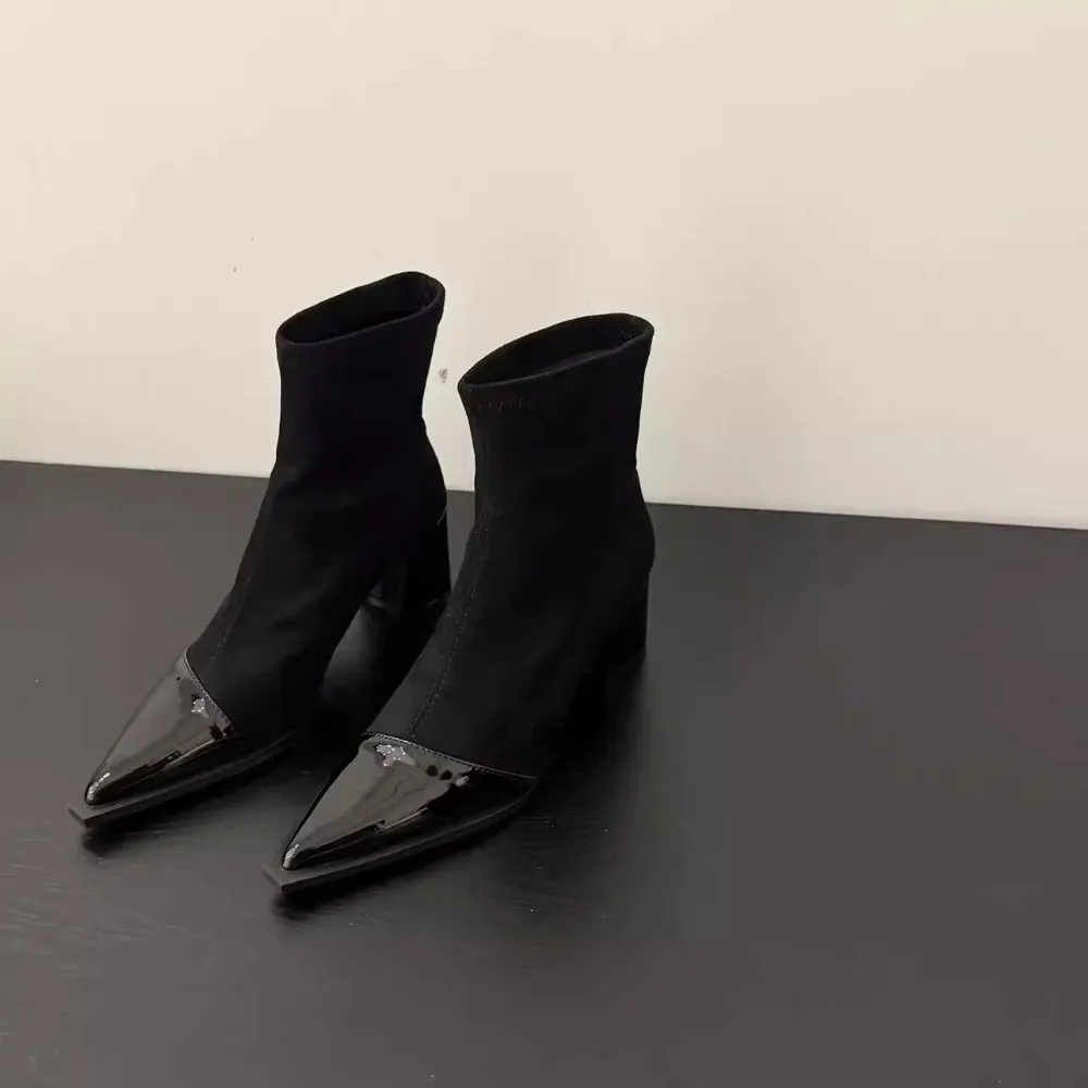 Women's New Autumn Chunky Single Boots Pointed Suede Splicing Anti-slip Wear-resistant Ankle Boots High Heel Short Boots boots_highheel