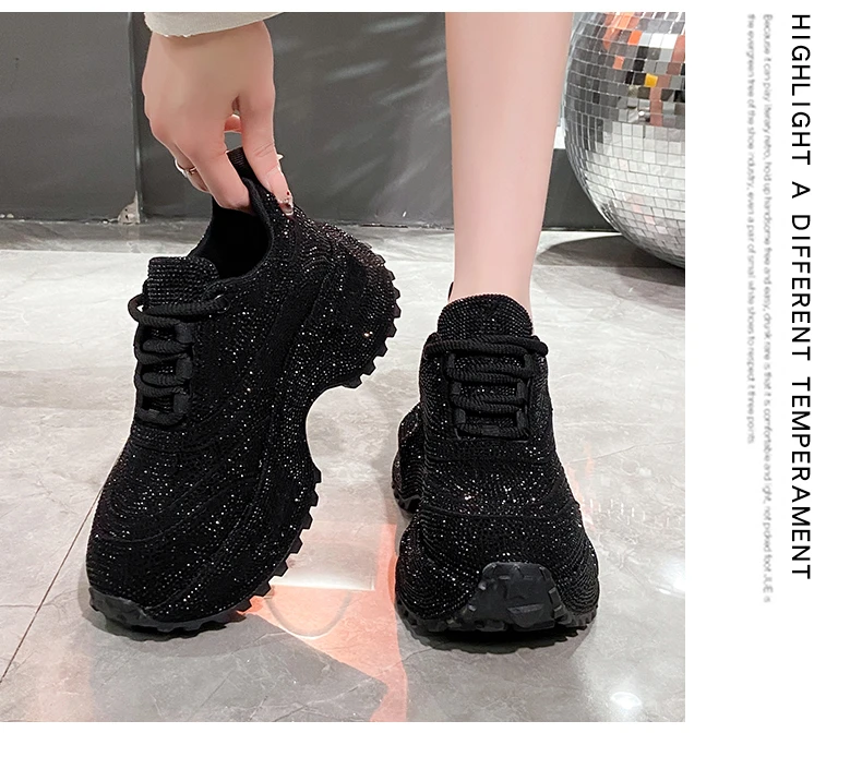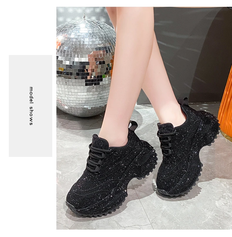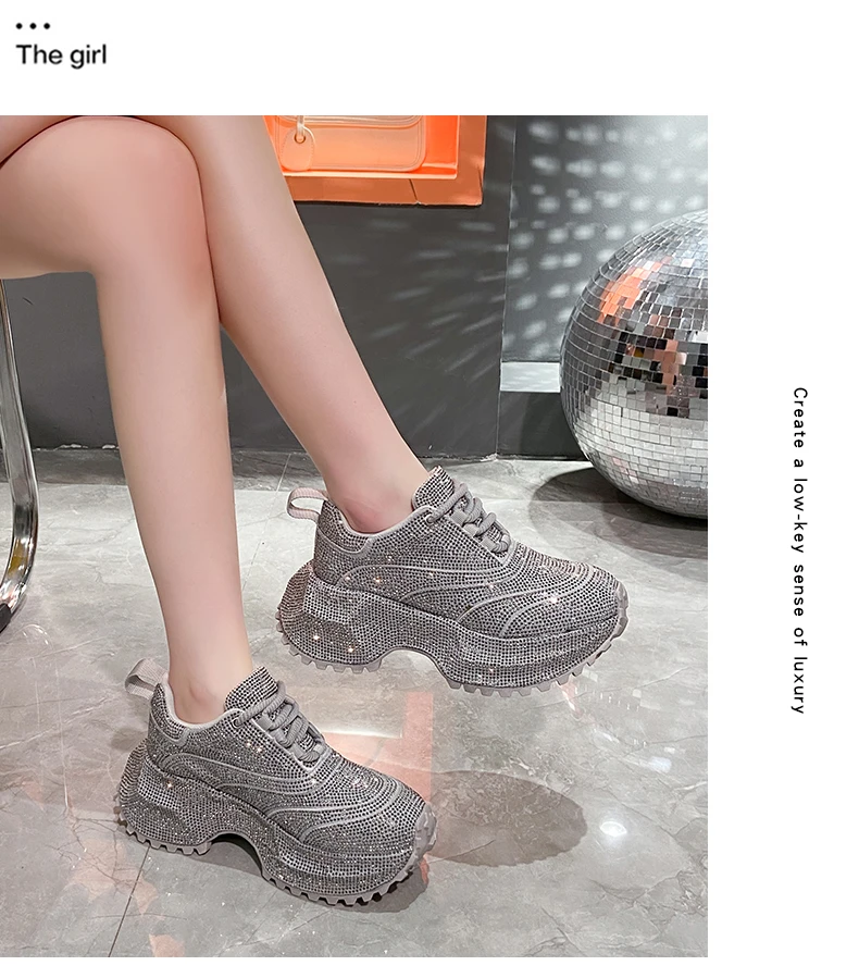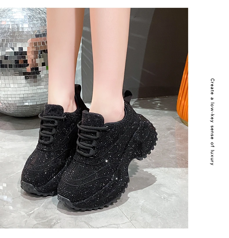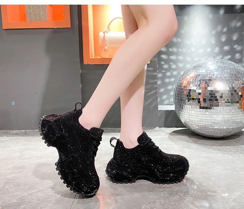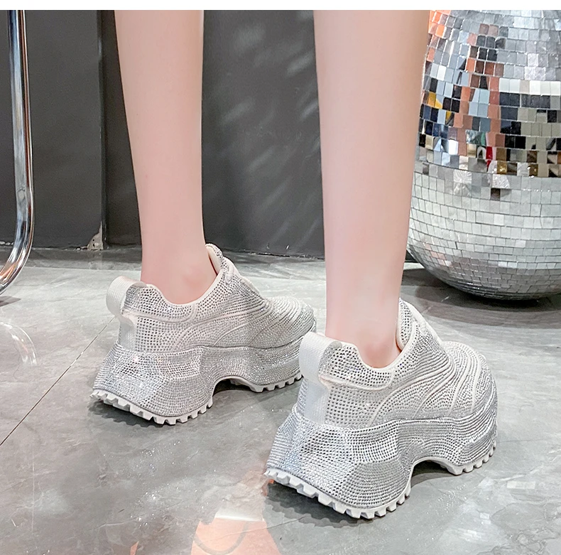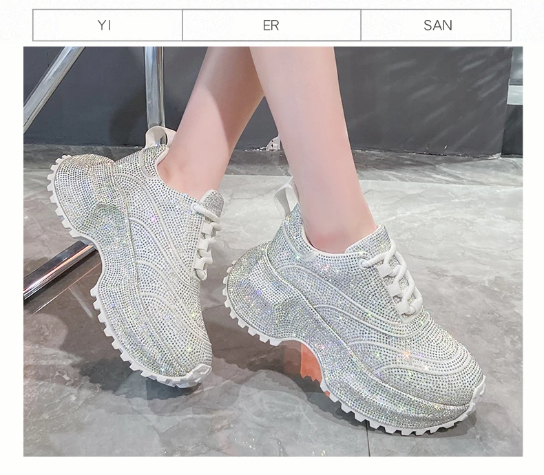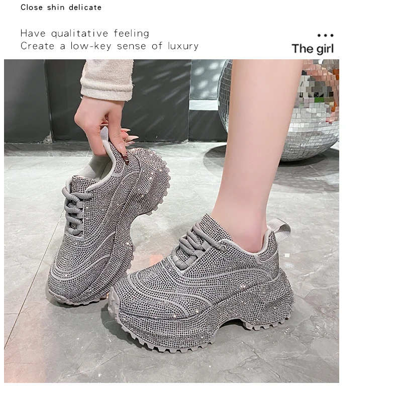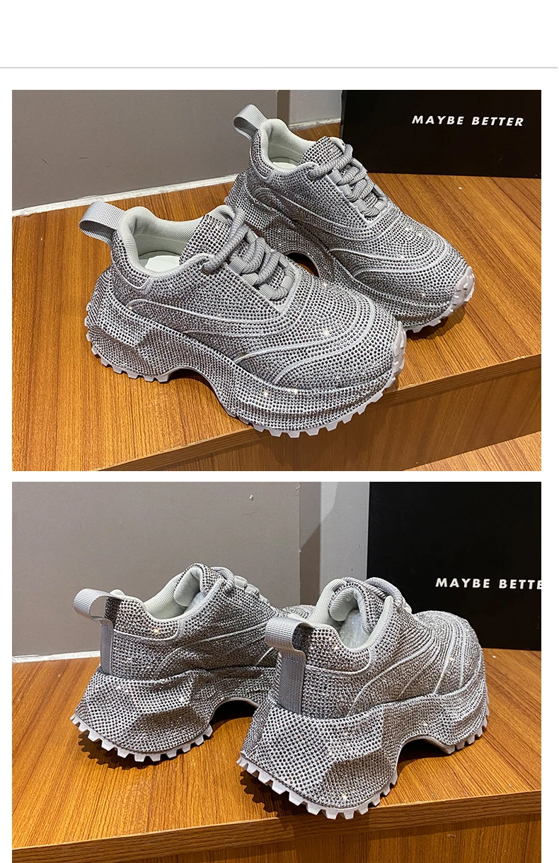 Women's Rhinestone Shoes Luxury Rhinestones Platform Sneakers Outdoor Anti slip Running Shoes 7cm Thick-soled Casual Shoes sneakers_platform