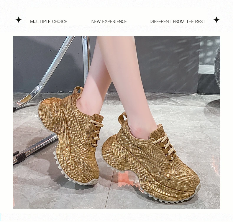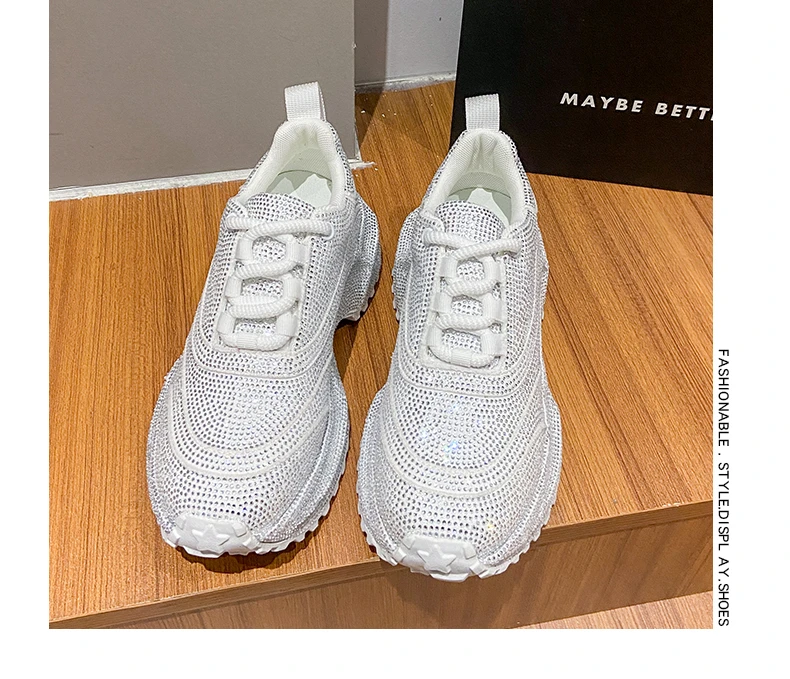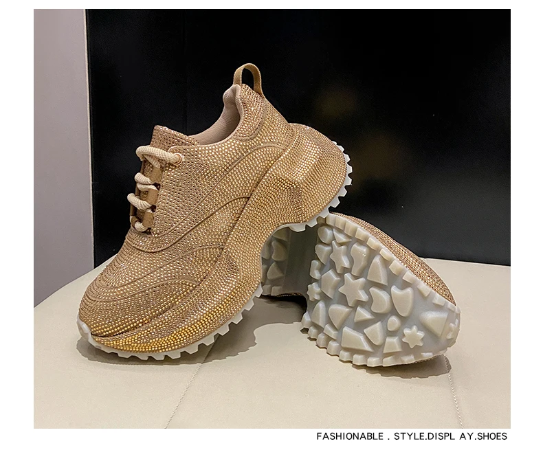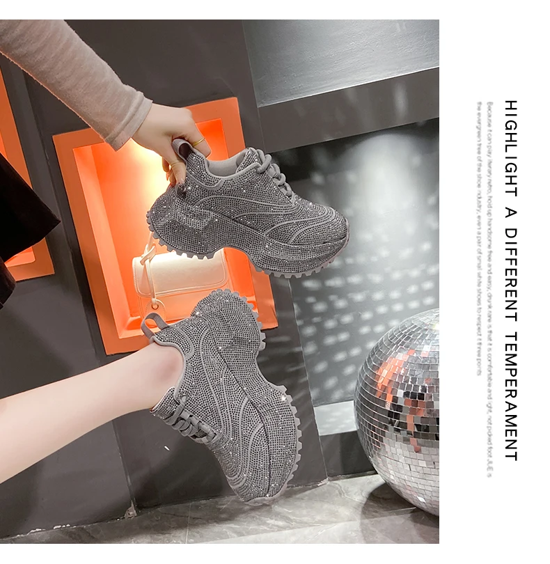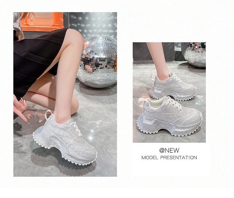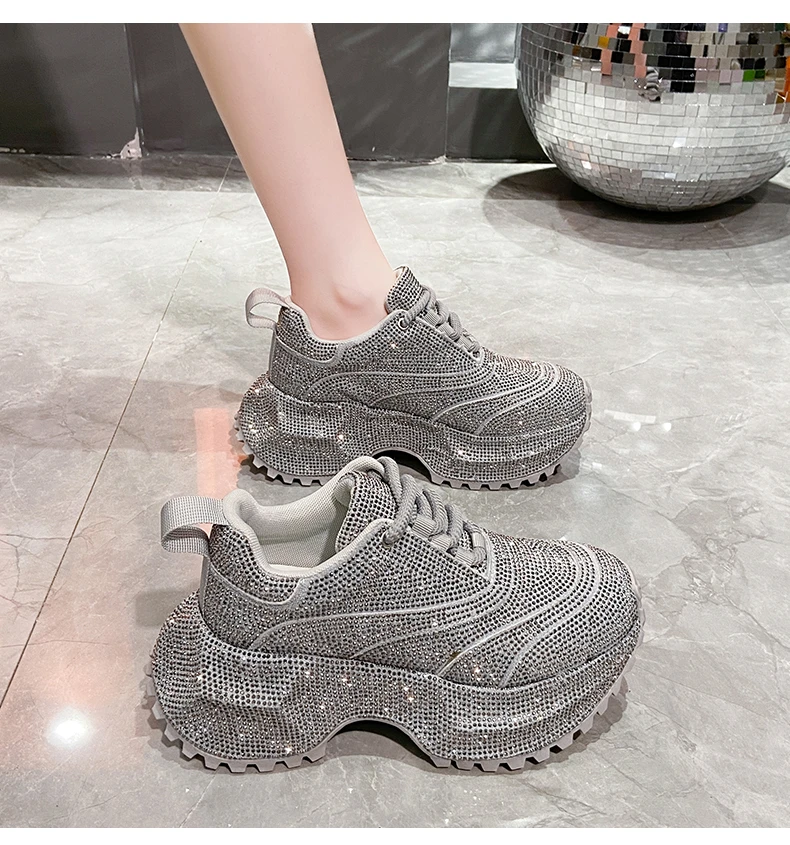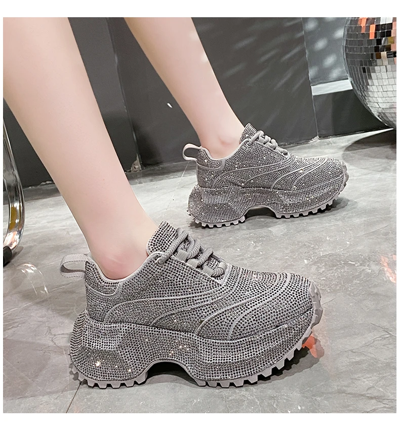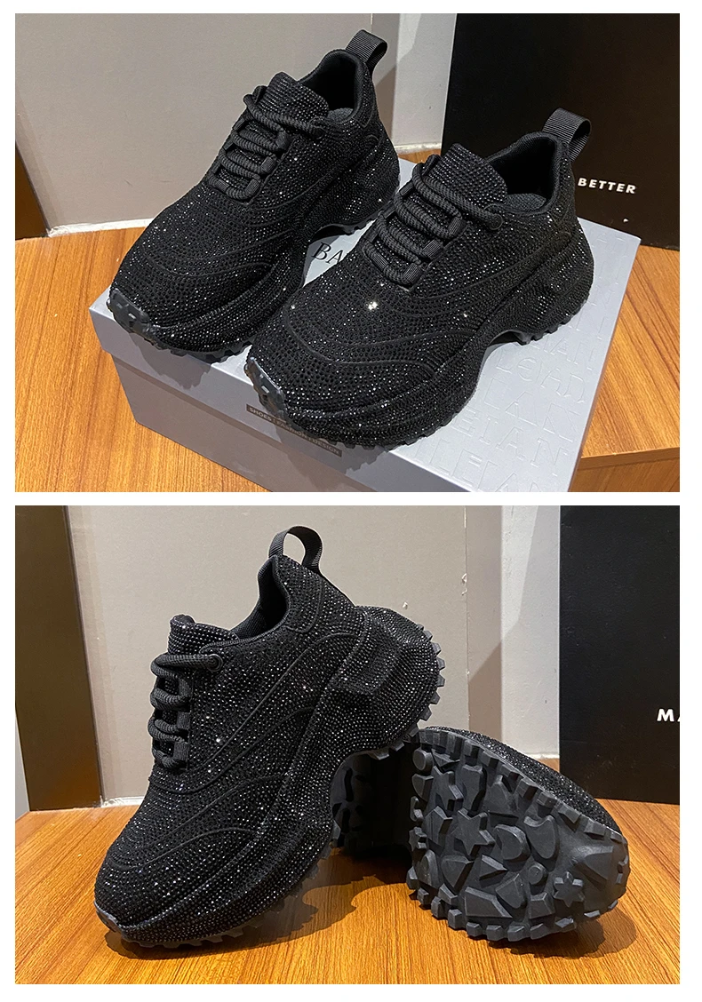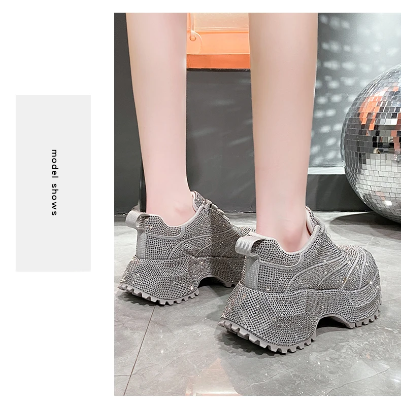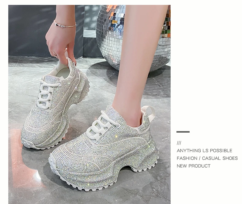 Women's Rhinestone Shoes Luxury Rhinestones Platform Sneakers Outdoor Anti slip Running Shoes 7cm Thick-soled Casual Shoes sneakers_platform