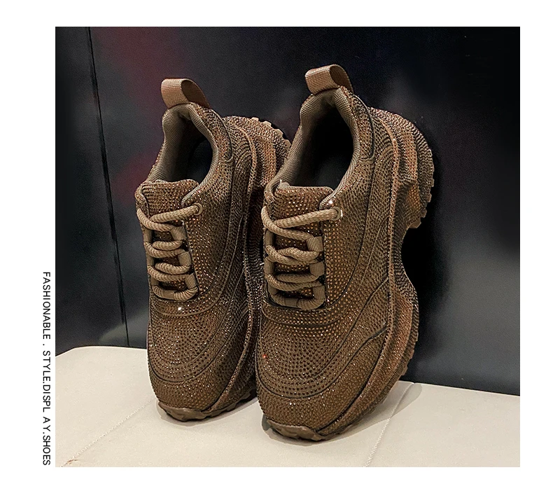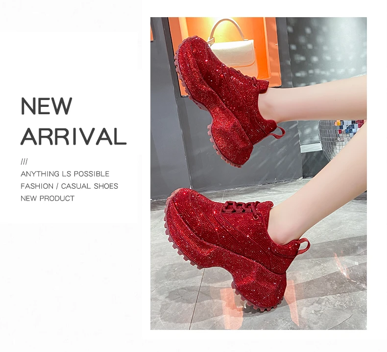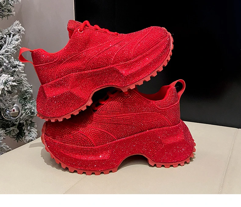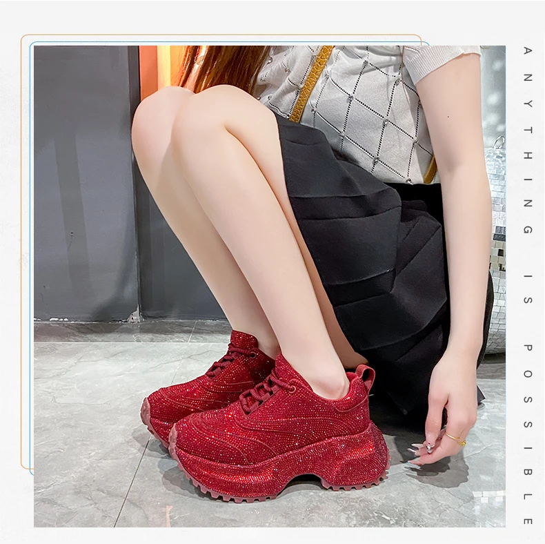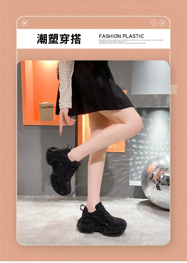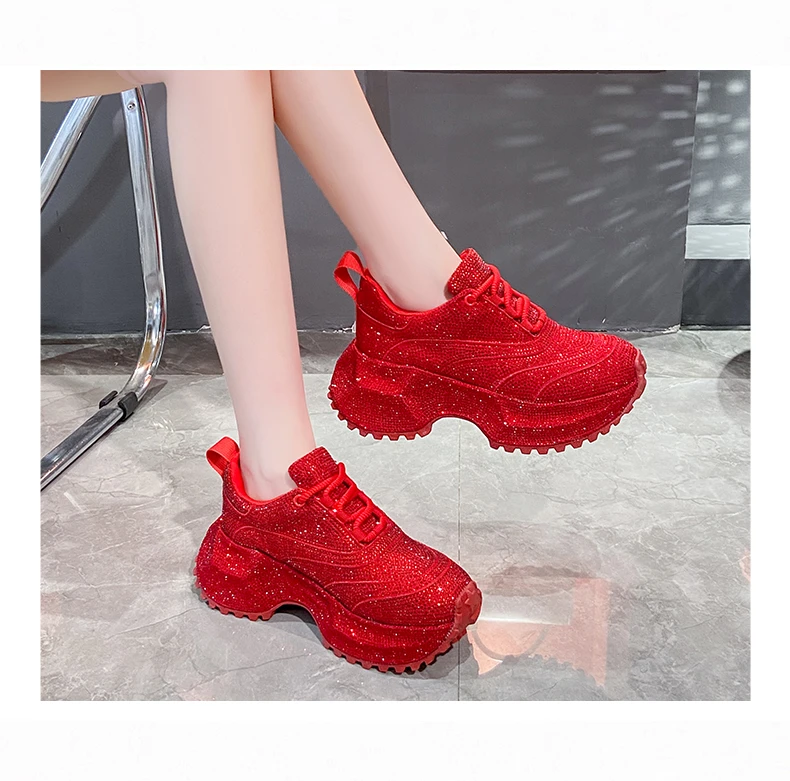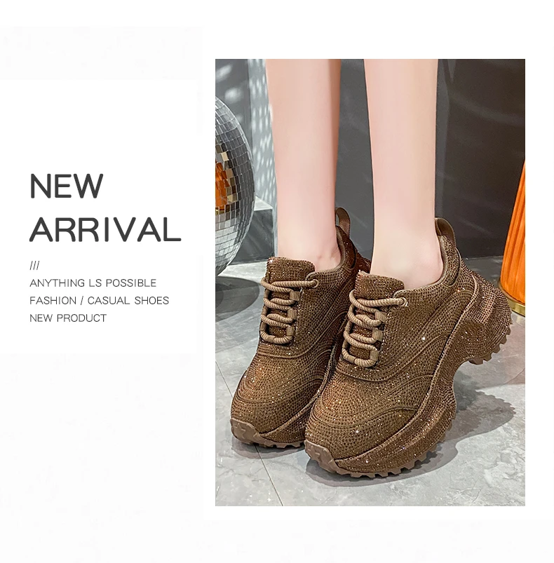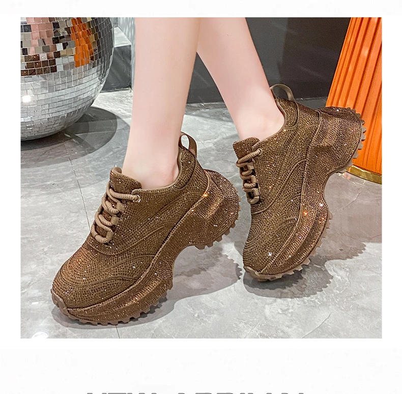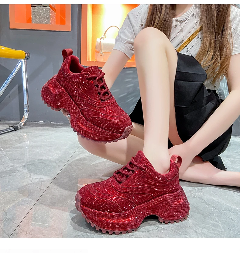 Women's Rhinestone Shoes Luxury Rhinestones Platform Sneakers Outdoor Anti slip Running Shoes 7cm Thick-soled Casual Shoes sneakers_platform